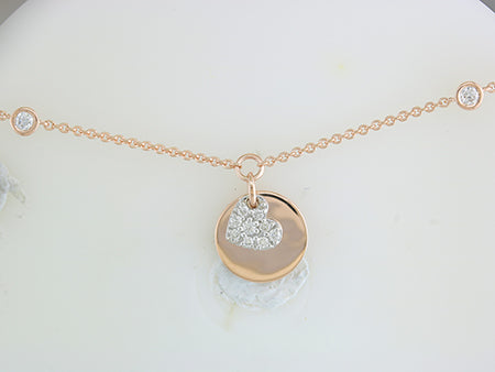 14K Two Toned White & Rose Gold Heart Charm Diamond Bracelet