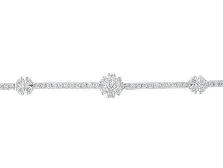 14K White Gold Floral Stations with Diamond Bar Links Bracelet