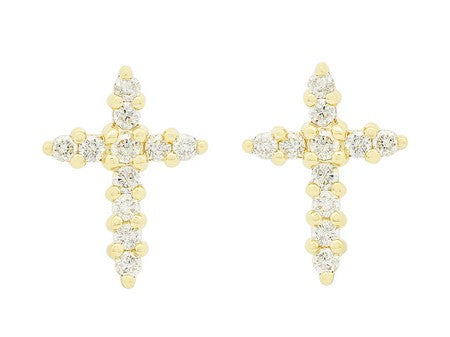 14K White Gold Shared Prong Diamond Cross Earring