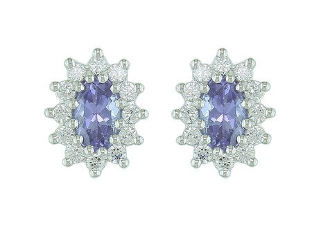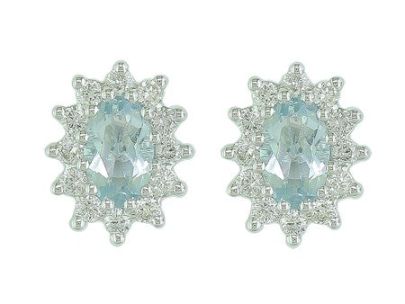 14K White Gold Aquamarine with Diamond Halo Earrings