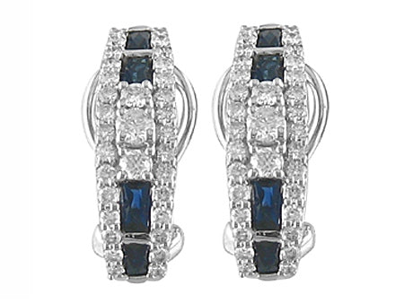 18K White Gold Sapphire with Diamond Accent Hoop Earring