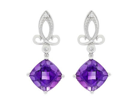 14K White Gold Amethyst with Diamond Accent Dangle Earring