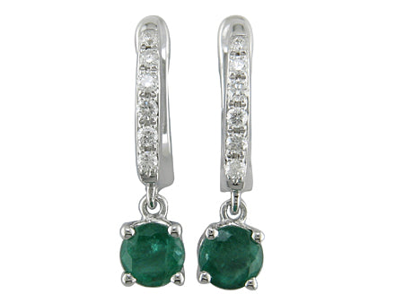 14K White Gold Diamond Hoop Earring with Emerald Dangle
