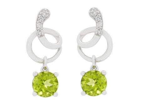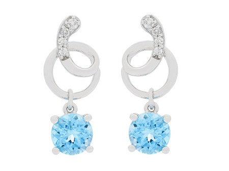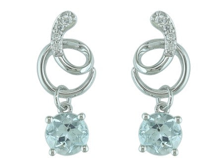 14K White Gold Aquamarine with Diamond Accent Dangle Swirl Earring