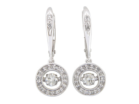 10K White Gold Dancing Diamond with Diamond Halo Dangle Earring