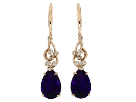 14K Rose Gold Amethyst with Bezel Set Accent Diamond Dangle Earring