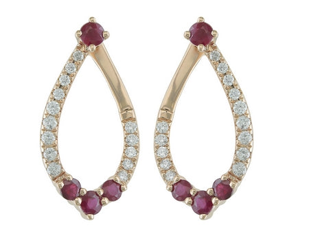 14K Rose Gold Ruby & Diamond Front and Back Earring