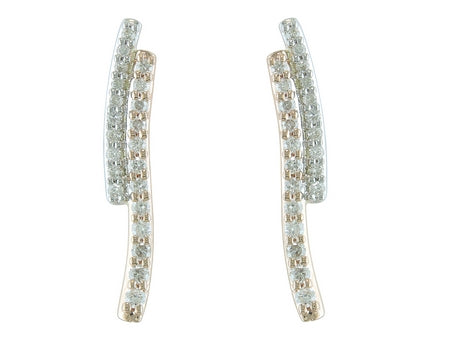 14K Rose & White Gold Diamond Ear Climber Bar Earring