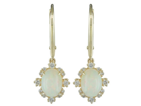 14K Yellow Gold Vintage Opal and Diamond Accent Earring