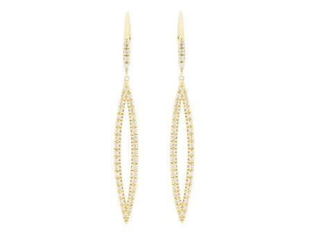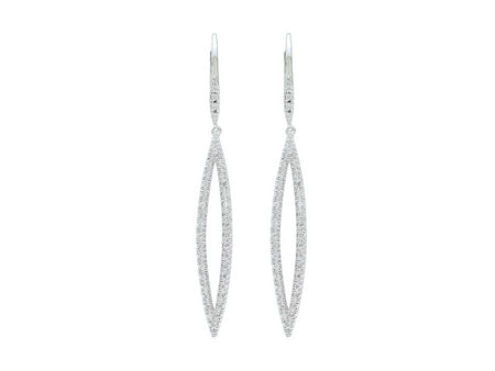 10K White Gold Thin Ellipse Diamond Long Dangle Earring