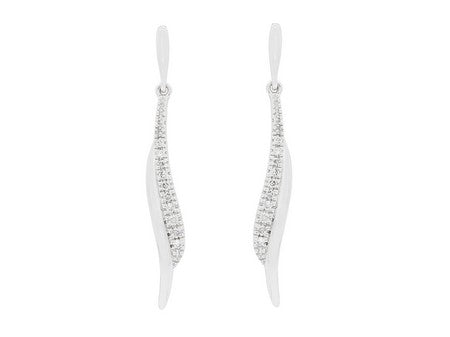14K White Gold Diamond Bar Drop Earring