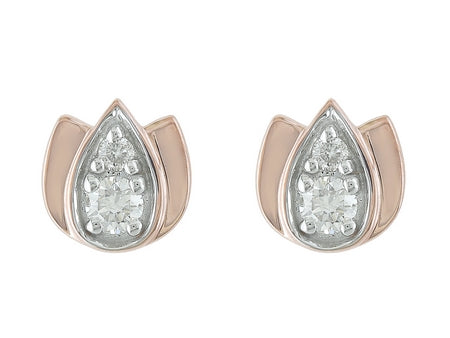 10K Rose Gold with White Rhodium Diamond Lotus Flower Earring