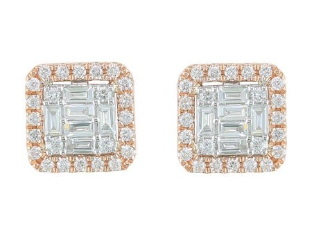 14K Two Tone White & Rose Gold Composite Diamond Earring