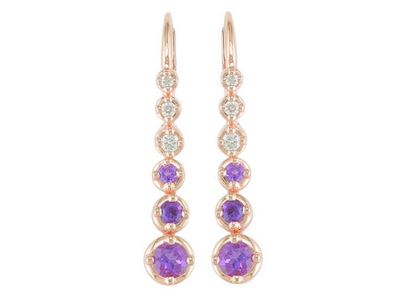 10K Rose Gold Amethyst & Diamond Dangle Earring