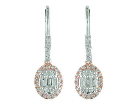 14K White & Rose Gold Diamond Halo Dangle Earring