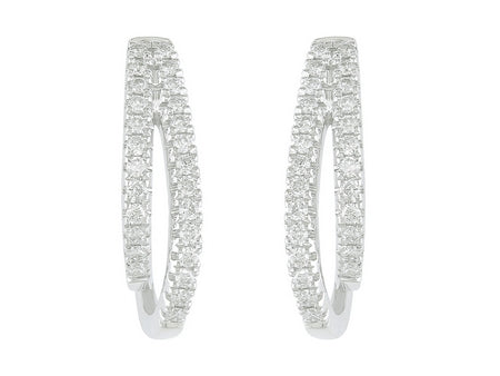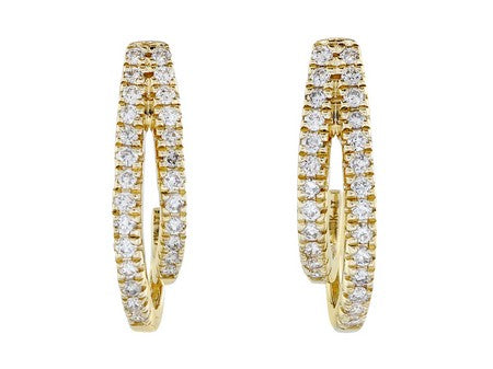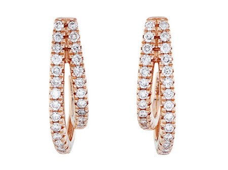 14K Rose Gold Split Double Row Diamond Hoop Earring