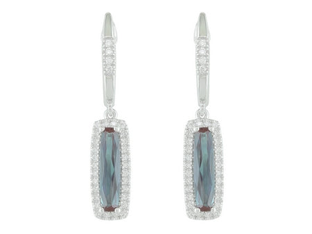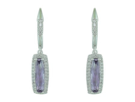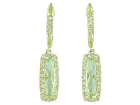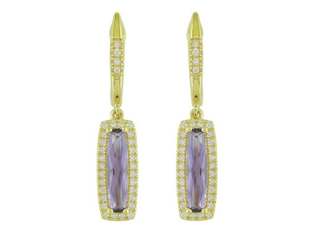 14K Yellow Gold Elongated Elegance North South Set Amethyst with Diamond Halo Dangle Earrings