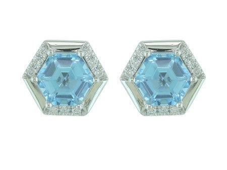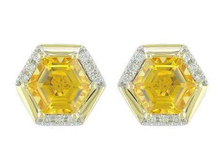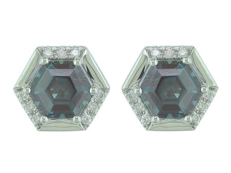 14K White Gold Hexagon Created Alexandrite with Diamond Accent Earrings