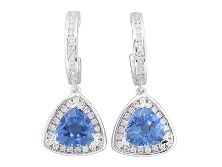 18K White Gold Tanzanite with Channel Diamond Halo Dangle Earring