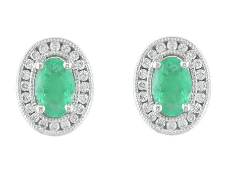 14K White Gold Emerald with Channel Set Diamond Halo Earring
