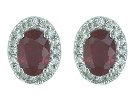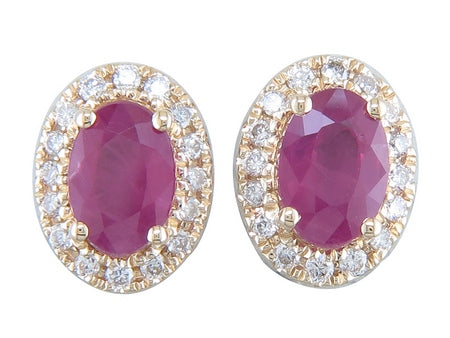 18K Yellow Gold Ruby with Diamond Halo Earring