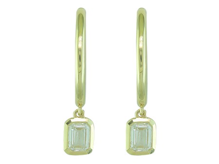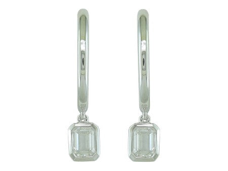 14K White Gold Simple Bezel Set Diamond Hoop Earring