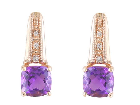 14K Rose Gold Amethyst with Diamond Accent Drop Earring