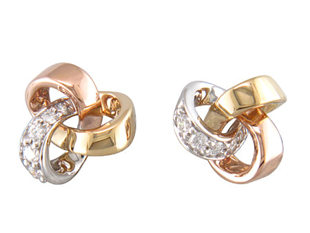 14K Tri Tone Yellow, White & Rose Gold with Diamond Accent Knot Earring