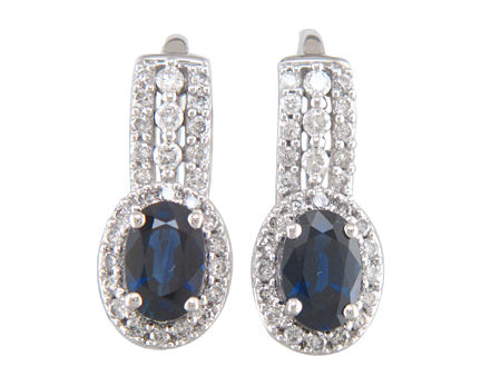 14K White Gold Sapphire with Diamond Halo Drop Earring