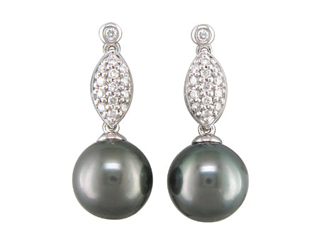 18K White Gold Tahitian Pearl with Pave Set Diamond Accent Earring