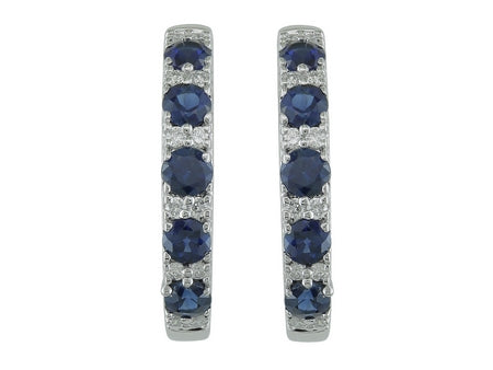 14K White Gold Sapphire & Diamond Hoop Earring