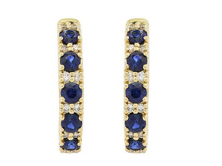 14K Yellow Gold Sapphire & Diamond Hoop Earring