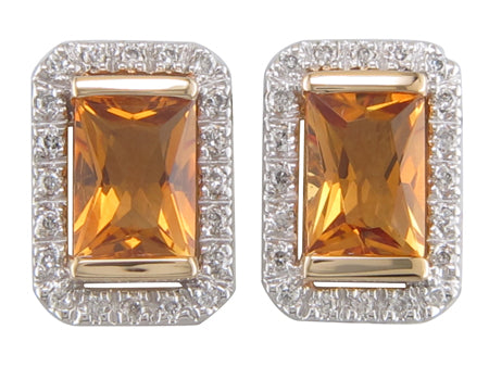 10K Yellow & White Gold Citrine with Diamond Halo Earring