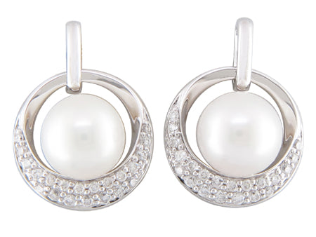 14K White Gold Pearl with Diamond Accent Dangle Earring