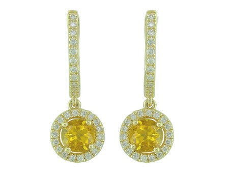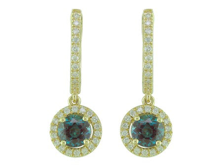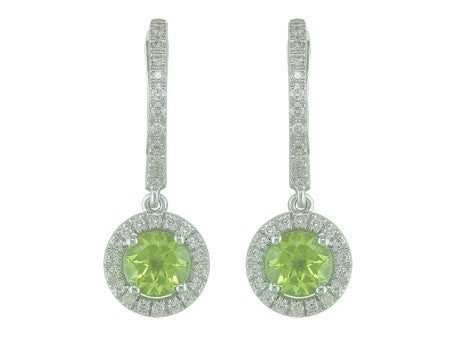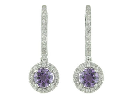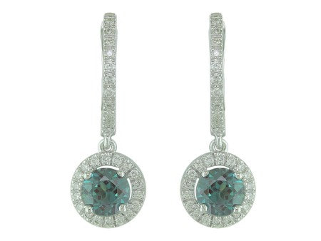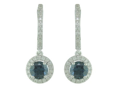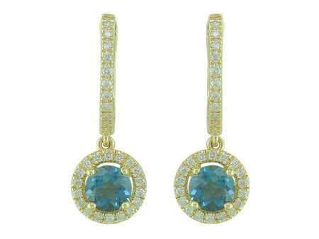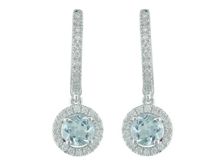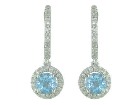 14K White Gold Blue Topaz Drop Earring with Diamond Halo