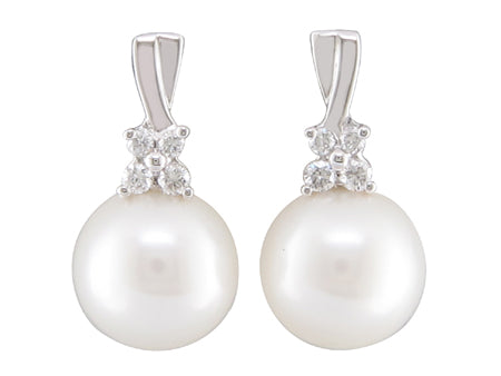 14K White Gold Pearl with Diamond Accent Earring