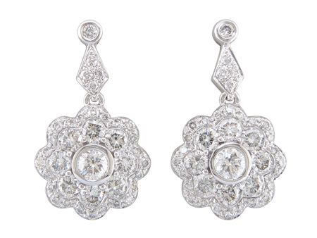 14K White Gold Diamond Flower Cluster Dangle Earring