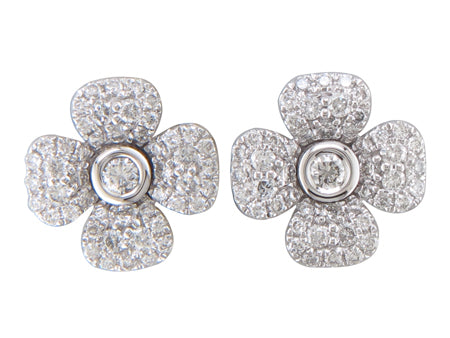 14K White Gold Pave Set Diamond Flower Earring