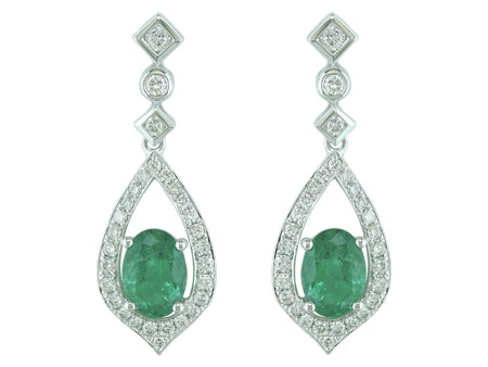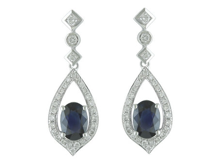 14K White Gold Classic Vintage Sapphire & Diamond Dangle Earring