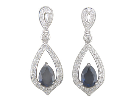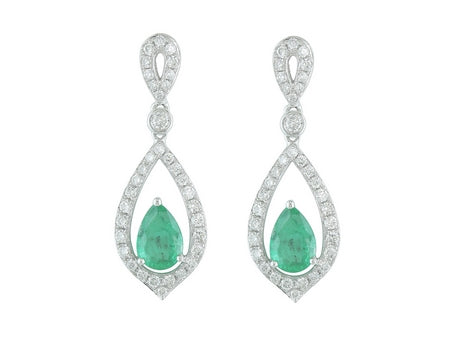 14K White Gold Classic Vintage Emerald & Diamond Dangle Earring