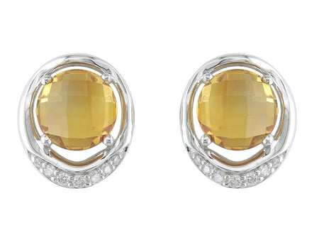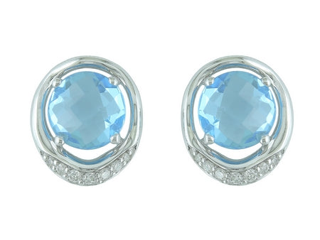 14K White Gold Blue Topaz with Diamond Accent Earring