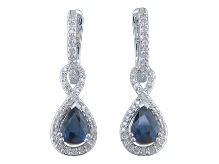 14K White Gold Sapphire with Diamond Halo Dangle Earring