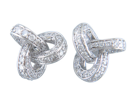 14K White Gold Pave Set Diamond Knot Earring