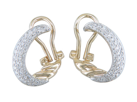 14K Two Tone Yellow & White Gold Pave Set Diamond Loop Fashion Earring