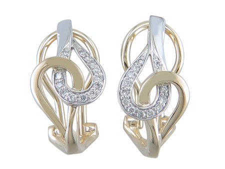 14K Yellow & White Gold Interlocking Diamond Hoop Earring
