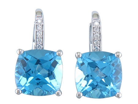 14K White Gold Blue Topaz with Diamond Accent Earring