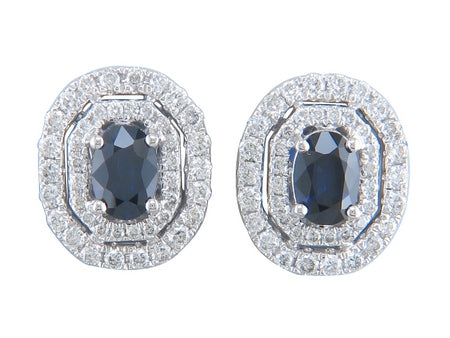 14K White Gold Sapphire with Diamond Double Halo Earring