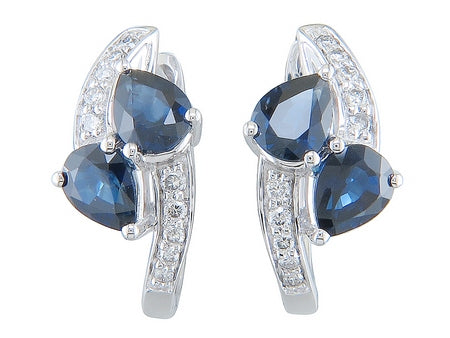 14K White Gold Sapphire with Diamond Accent Hoop Earring