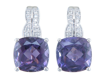 18K White Gold Amethyst with Diamond Accent Earring