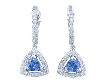 14K White Gold Tanzanite with Diamond Halo Dangle Earring